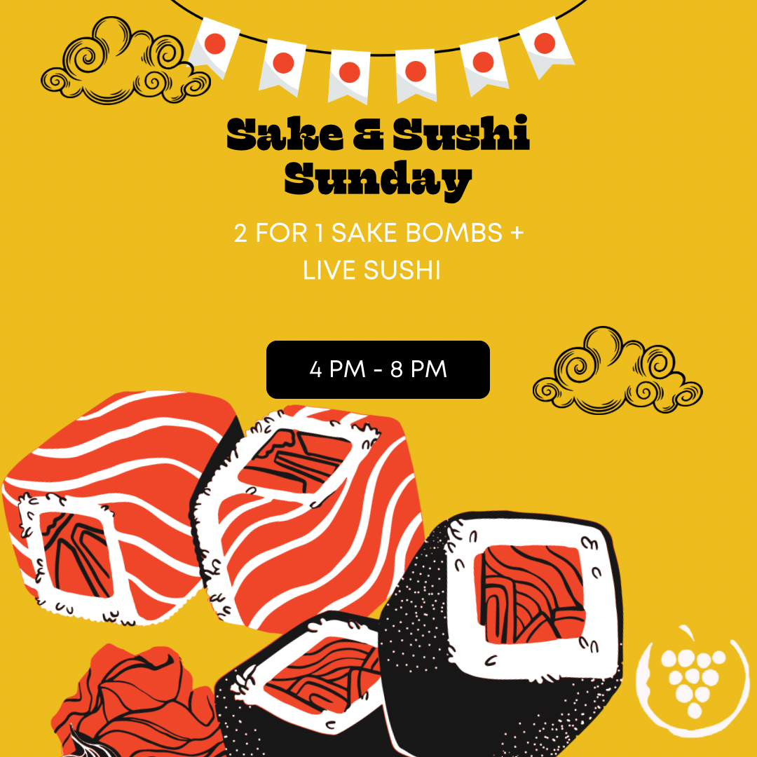 Join us Sunday, October 22 from 4 pm - 8 pm for 2 for 1 Sake Bombs and Live Sushi, Oysters, and more!